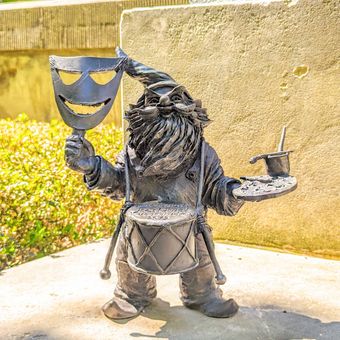 The statue, installed in September 2019, continues the tradition of dwarf sculptures that began as symbols of resistance against the communist regime.