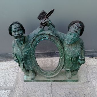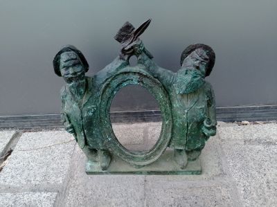 Andrzej Nożycoręki i Tomcio Malarz, Bronze dwarf statue in Nadodrze district, Poland.