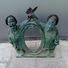 Two small bronze figures stand side by side, with one holding scissors and the other a paintbrush, representing craftsmanship and artistic creation.