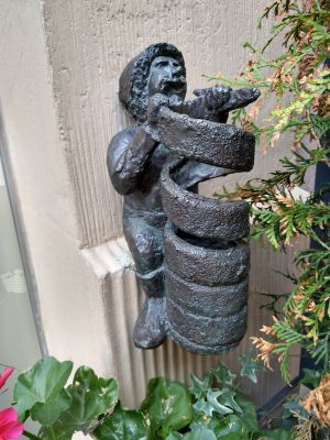 The Czimnejek figure stands near the Hansel & Gretel houses, forming part of a collection of small bronze sculptures across the city.