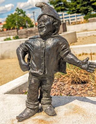 Located in the Old Town district, this bronze sculpture stands at street level, making it accessible for photographs and part of the city's dwarf-finding activities.