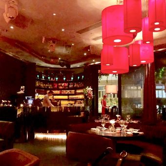 The space transforms from an upscale dining establishment into a high-energy nightclub as evening progresses, featuring international DJs and performances.