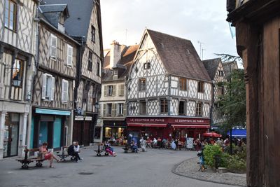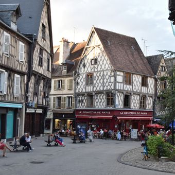 Place Gordaine creates an intersection where multiple old streets meet, surrounded by timber-framed buildings and local businesses.