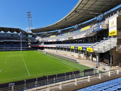 Stade Marcel-Michelin houses 19,000 spectators in its stands, featuring heated turf and modern facilities for rugby matches throughout the season.