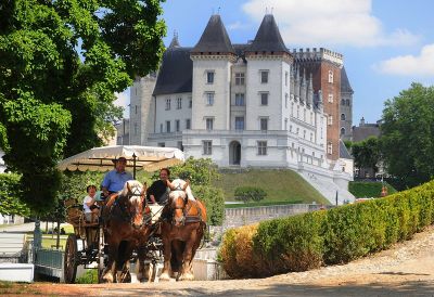 The historical monuments of Pau reflect its royal past. The 14th-century castle, birthplace of Henry IV, overlooks the city. The Boulevard des Pyrénées offers a view of the mountain range. The Palais Beaumont, the Museum of Fine Arts, and the Bernadotte birthplace house present local history and art. Religious buildings, historical squares, and the funicular illustrate urban development. The city also has natural spaces and sports facilities, including the racetrack and the motor racing circuit.