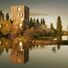 The winery incorporates Tuscan architectural elements throughout its grounds, featuring Italian-style gardens and straight-lined textured stone walls.