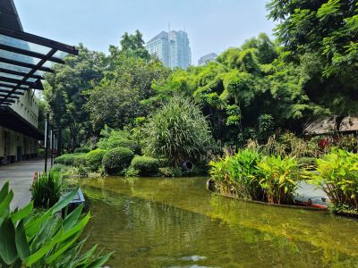 The park, established in the late 1990s, transformed the commercial district of Makati into an integrated space combining nature with urban development.