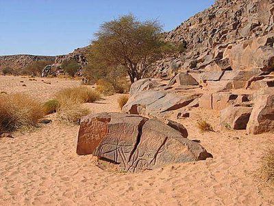 Wadi Mathendous, Archaeological site in Fezzan region, Libya.