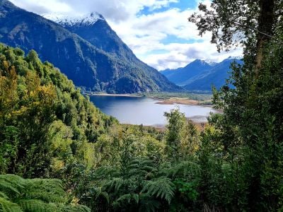 The park spans 400,000 hectares, featuring temperate rainforests, glaciers, volcanoes, fjords, and numerous hiking trails through untouched natural landscapes.