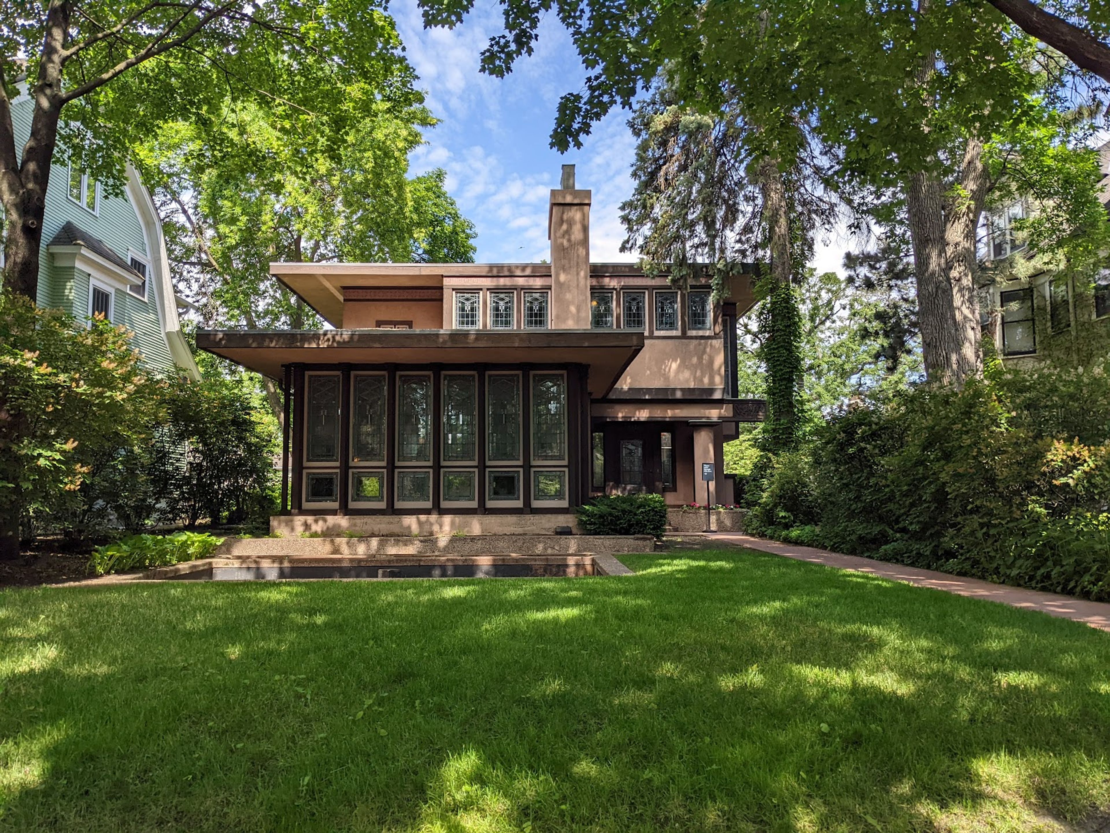 Architects William Gray Purcell and George Grant Elmslie constructed this residential masterwork in 1913, implementing Louis Sullivan's principles of organic architecture.