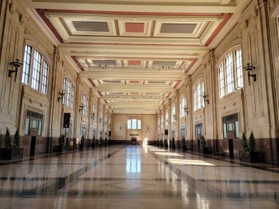 The complex offers Amtrak train services and features restaurants, shops, and parking for visitors throughout the day. Its central location makes it easily accessible, and the building operates during extended hours to accommodate travelers.