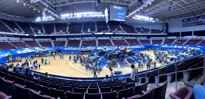 The arena covers 377,000 square feet of space with multiple seating configurations, accommodating up to 18,000 spectators for basketball games and concerts.