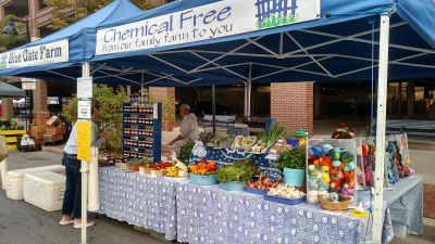 The market operates every Saturday from May through October, with regular hours from 7 AM to noon and adjusted October hours from 8 AM to noon.