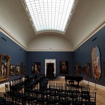 The RISD Museum contains over 100,000 objects across seven curatorial departments, presenting works from ancient artifacts to contemporary pieces in Providence, Rhode Island.
