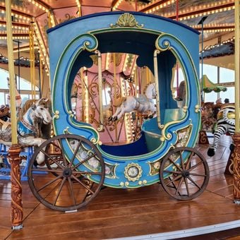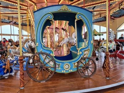 Au Paradis des enfants, Carousel and roofed attraction in Courseulles-sur-Mer, France.