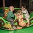 Children experience specialized zones including the Mini Aventurier area, interactive target games, and a ball cannon system within the temperature-controlled environment.