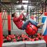 The facility features specialized training zones where participants navigate through suspended platforms, climbing walls, and balance beams to complete full-circuit challenges.