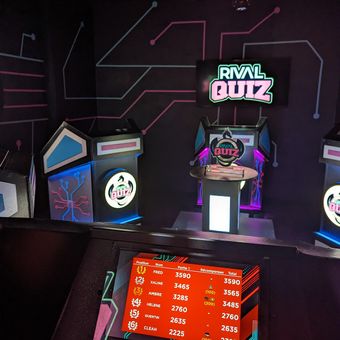 Rival Quiz Strasbourg features six gaming stations where twelve players compete simultaneously through multiple rounds of trivia in a dedicated 25-square-meter space.