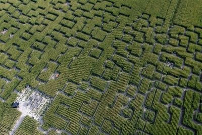 Pop Corn Labyrinthe spans across 4 hectares of farmland, featuring intricate pathways carved through tall corn stalks for summer entertainment and exploration.
