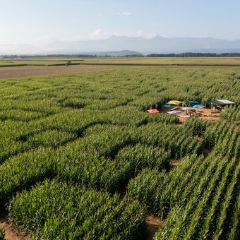 The agricultural land where Pop Corn Labyrinthe operates has been transformed from traditional farming fields into an entertainment venue since its establishment.