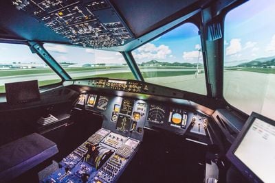 The Aviasim center features professional-grade flight simulators with complete cockpit replicas of commercial and military aircraft, including the Airbus A320 and F-16.