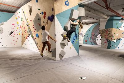 The facility combines climbing walls reaching 14 meters high with specialized trampoline zones, allowing visitors to practice both vertical and aerial sports simultaneously.