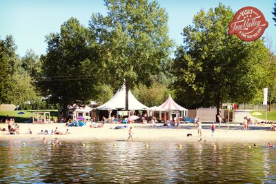 The facility incorporates Dutch outdoor recreation traditions through kayaking, pedal boats, and beach activities along the water's edge.