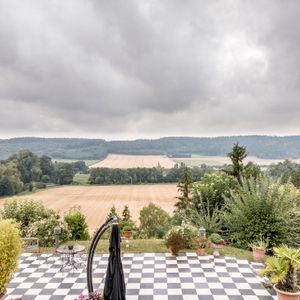 Le Vert Galant is a bed and breakfast with five individually designed rooms overlooking the Iton valley, featuring a distinctive stone staircase at the entrance. Each room includes a private bathroom, balcony, minibar, and some rooms have specialized spa facilities.