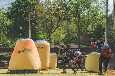 Paintball Select Park encompasses 6 hectares of varied gaming environments with urban settings, forest areas, and sand-based competition fields.