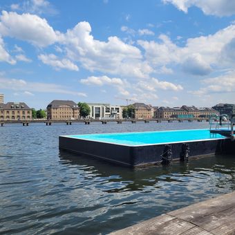 Badeschiff, Outdoor swimming pool in Friedrichshain-Kreuzberg, Germany.