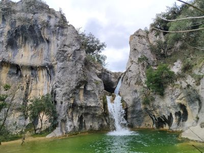 Visitors can reach the waterfall through a 10-minute walk from the designated parking area, following the marked trail near camping les Silhols.