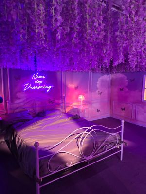 Visitors progress through different creative zones that combine digital technology with artistic expression to examine concepts of dreams, desires, and personal growth.