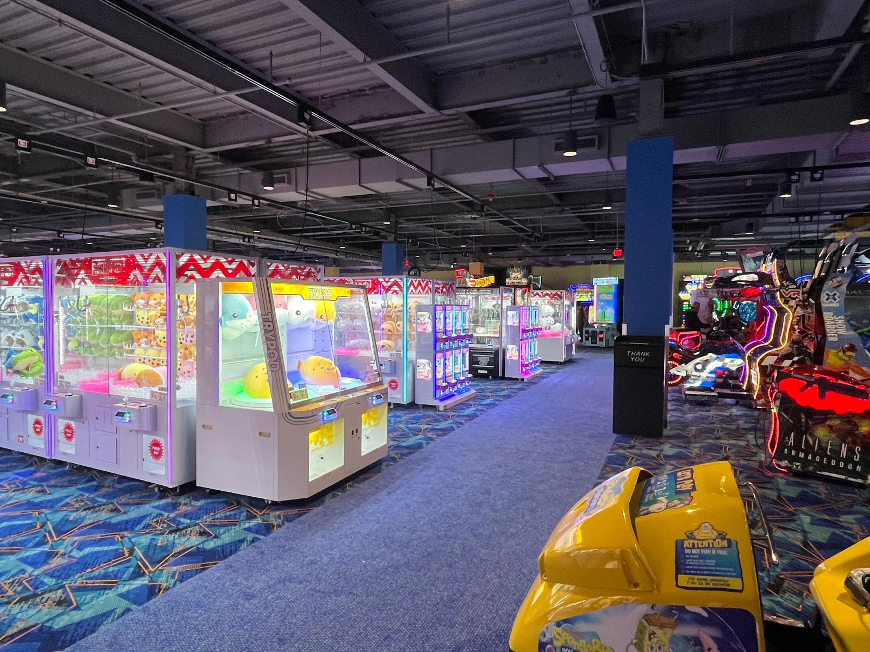 The rhythm game section features specialized machines like Pump It Up Phoenix and DanceDanceRevolution WORLD, establishing a dedicated space for music gaming enthusiasts.