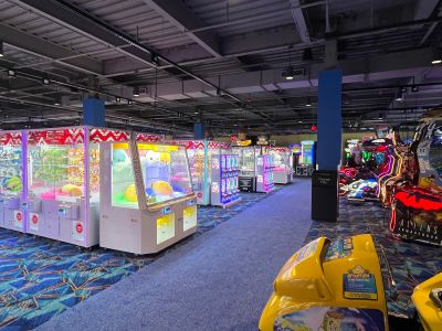 The entertainment center integrates Japanese arcade gaming culture with American bowling traditions, creating a multi-activity entertainment space for local residents.