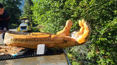 Main sculptée, Monumental sculpture in Morzine, France.