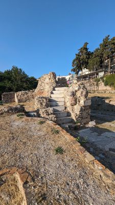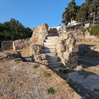 The Nympheon archaeological site contains multiple ancient structures dedicated to religious practices, with preserved foundations and architectural elements from different periods.