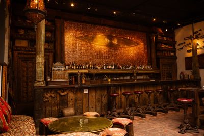 The front room functions as a restaurant, while the back space houses the main bar, and the rooftop opens during peak hours.
