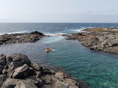 Los Charcones, Natural swimming area near Playa Blanca, Lanzarote, Spain.