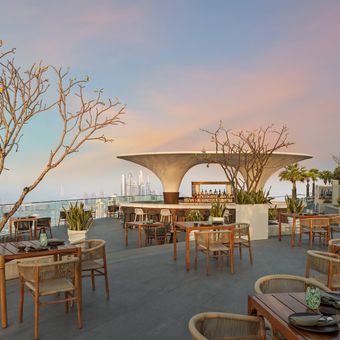 ZETA Seventy Seven is an elevated rooftop restaurant situated 300 meters above sea level atop the Address Beach Resort, offering panoramic views of Dubai's skyline, the Arabian Gulf, and Palm Jumeirah.