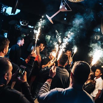 The establishment reflects Dubai's contemporary fusion culture by combining modern Western nightlife concepts with subtle Arabic design elements and international cuisine offerings for diverse clientele.