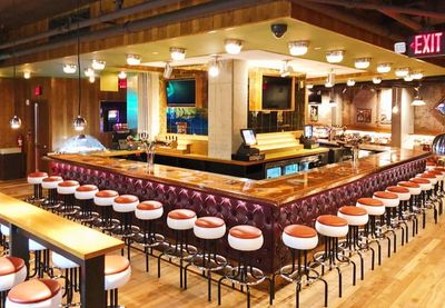 The venue pays homage to video game culture and 70s-80s music styles, creating a nostalgic environment that combines recreational gaming activities with modern drinks and dining options in an adult playground setting.