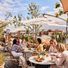 This elevated dining venue features an open kitchen, panoramic city views, and an all-seasons pergola providing outdoor dining protection while maintaining terrace ambiance throughout the year.