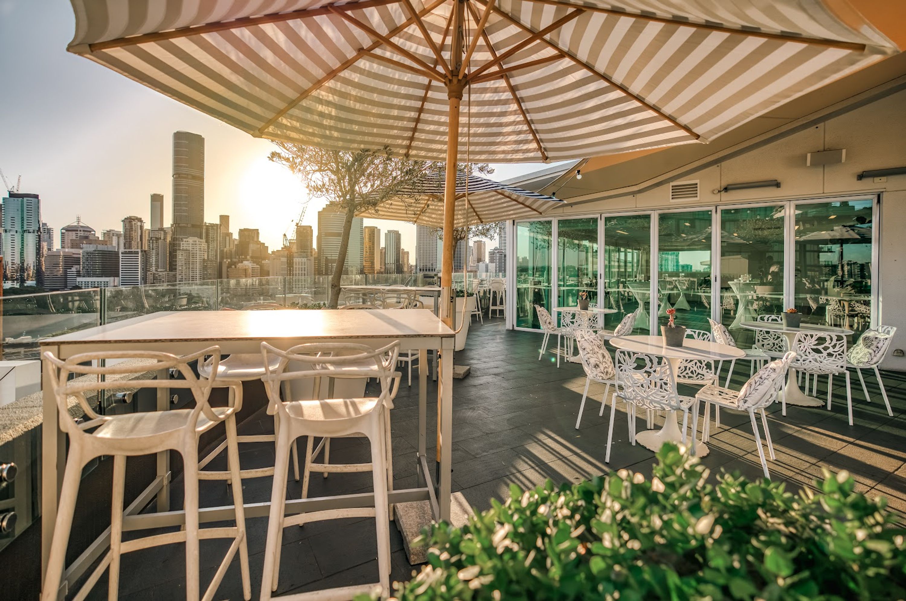 Eagles Nest, Rooftop bar and terrace on the 12th floor of The Point Brisbane Hotel in Kangaroo Point, Australia.