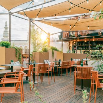 Le Tavernier, Rooftop restaurant and bar on Gran Vía, Madrid, Spain.