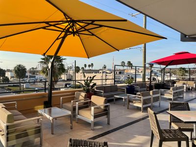 Santo's Drinkeria Rooftop Bar features an elevated outdoor terrace with views of Tampa's cityscape, offering a relaxed environment for socializing with weather-resistant furniture and safety features.