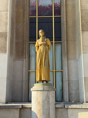 The statue stands accessible to the public at the Parvis des Droits de l'Homme near Palais de Chaillot, providing visitors with direct views of the Eiffel Tower from this location.