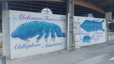 Pour cette fresque, l’artiste a uni l’art abstrait et le figuratif avec un personnage masculin dans un mouvement d’immersion dans l’espace numérique à la manière de « Matrix ».