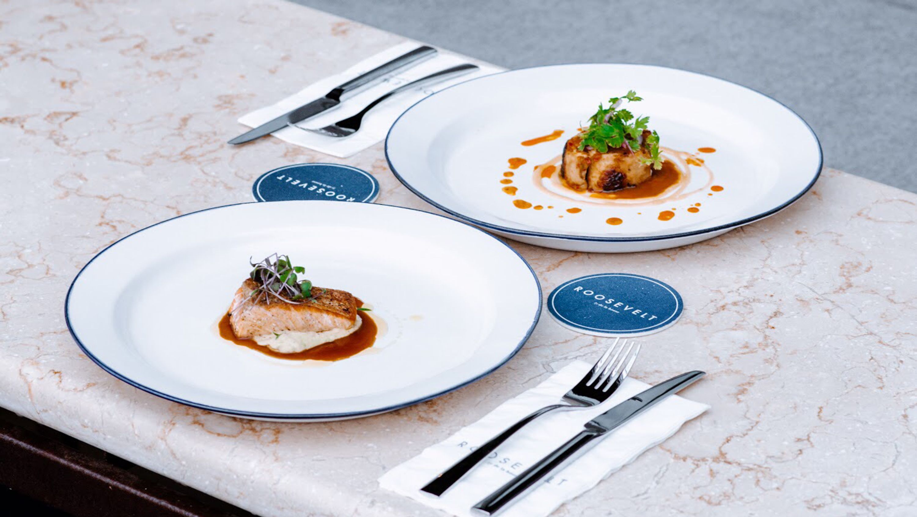 Roosevelt stands out for its unobstructed city views that are particularly striking at sunset, combining indoor lounge comfort with outdoor terrace ambiance to create a versatile environment.