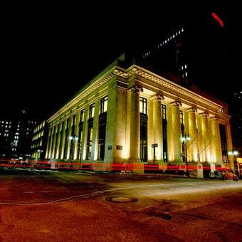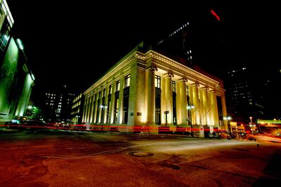 Originally constructed as the First National Bank building in 1906, this structure was transformed into the library's central location through extensive renovation completed in 2004, preserving its architectural grandeur.