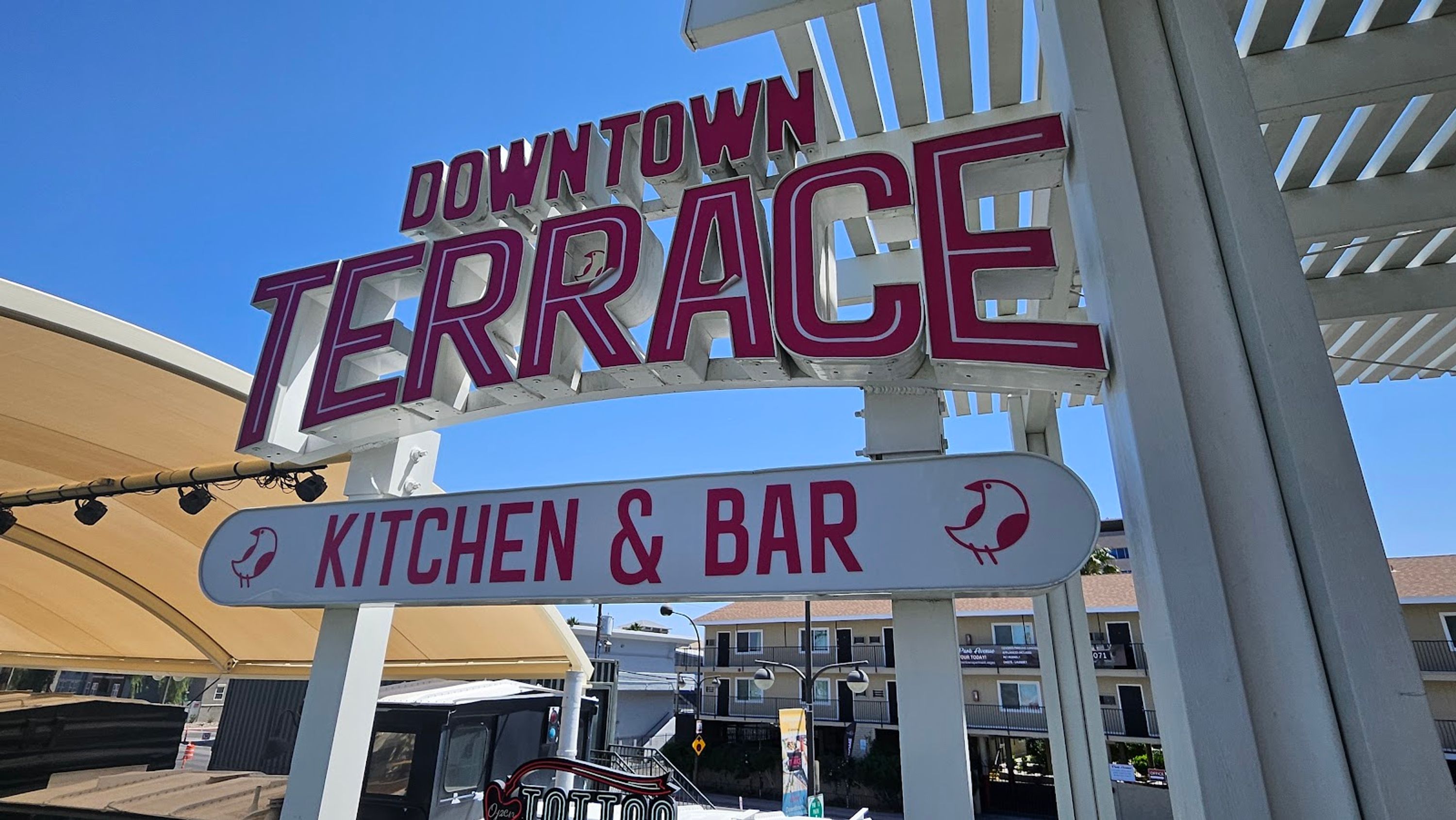Downtown Terrace Kitchen & Bar occupies the second floor of Container Park on Fremont Street, featuring both indoor and outdoor seating areas with panoramic views of the downtown Las Vegas skyline and accommodating up to 80 guests on its expansive balcony.